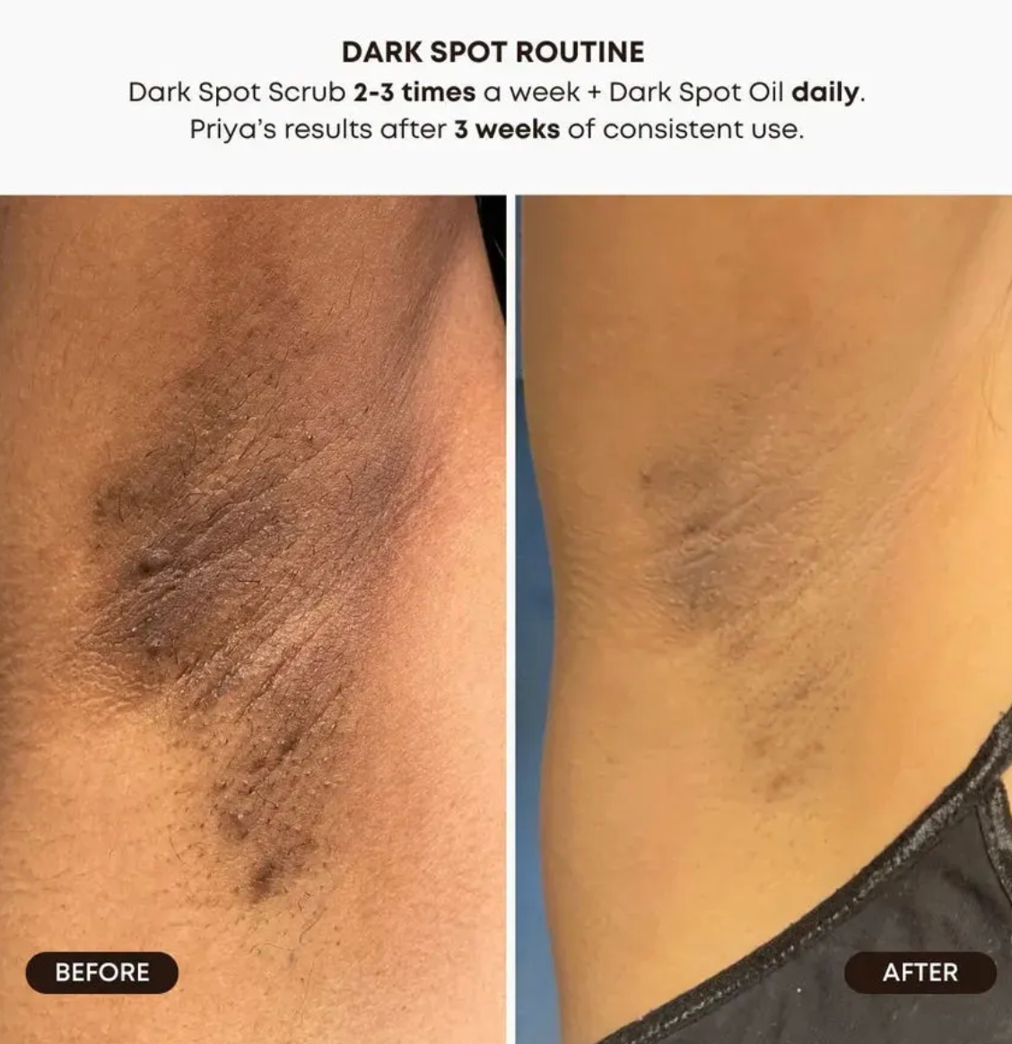 After 4–6 weeks: Noticeable reduction in the appearance of dark spots and uneven tone. For faster results, use the full dark spot collection